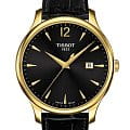 TISSOT T063.610.36.057.00 T-Classic Tradition - женские кварцевые наручные часы. Корпус этих часов среднего размера (42 мм) и выполнен из нержавеющей стали L316 с PVD-покрытием цвета желтого золота. Модель TISSOT T063.610.36.057.00 T-Classic Tradition имеет устойчивое к царапинам сапфировое стекло, ремешок из натуральной кожи черного цвета, черный циферблат. Калибр механизма: ETA F06.111. Класс водозащиты: 30 м / 3 АТМ (защита от брызг и случайных капель).