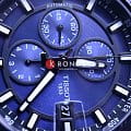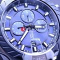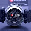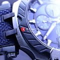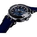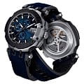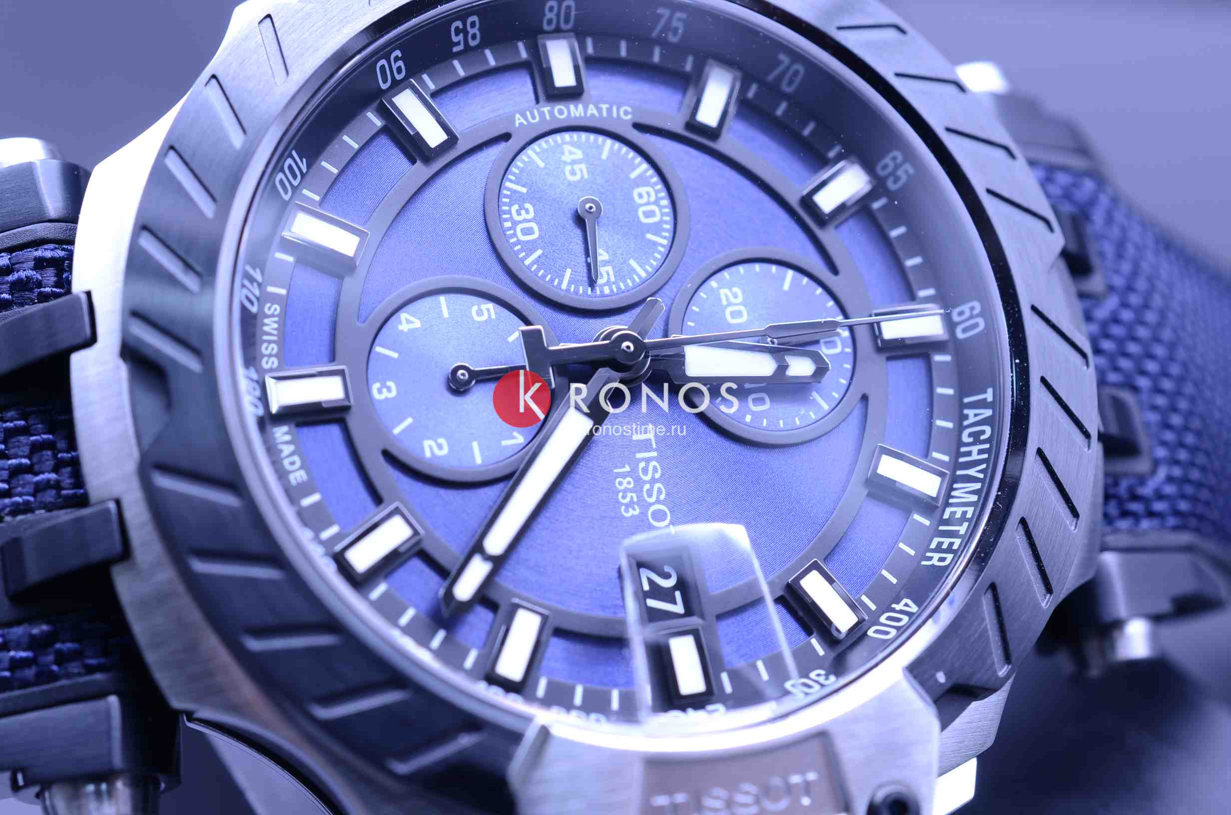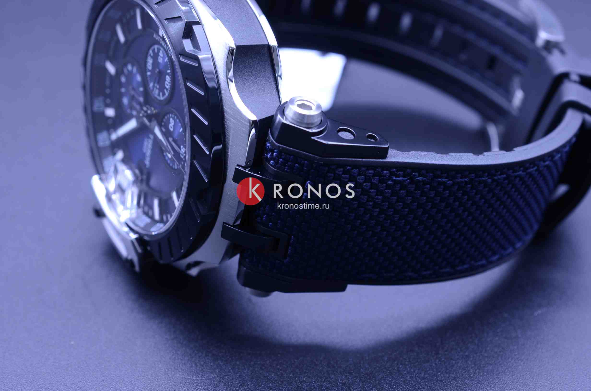 БезельБезельВнешний ободок, закрепляющий стекло. В спортивных часах так называется поворотное кольцо с делениями на циферблате, выполняет роль таймера – замеряет отрезки времени на шкале. Неподвижный безель – элемент декора. Однонаправленно вращающийся безель на дайверских часах позволяет фиксировать моменты погружения и выныривания на поверхность. выполнен в образе тормозного диска, чёрный цвет сочетается с синими переливами массивного циферблата со счётчиками хронографаХронографФункция позволяет измерять отрезки времени с особой точностью: часы, минуты, секунды. Верным признаком хронографа является наличие на циферблате 3 дополнительных окошек-счётчиков.. Задняя крышка сделана в виде колеса. Механические часы с автоподзаводом оснащены швейцарским механизмом C01.211, сохраняющим запас хода до 40 часов. Корпус из долговечной стали 316L с PVD-покрытиемPVDУльтратонкое покрытие наносится в технике вакуумного напыления, сочетает в себе нитрид титана особой прочности со слоем золота или оксида хрома. Несёт в себе декоративную или защитную функцию.. Ремешок из каучука и натуральной кожи. Секундомер, календарь, тахиметрТахиметрРазмеченная шкала, располагается на ободке или безеле часов. Тахиметр позволяет рассчитать скорость на определённом участке пути, расстояние измеряется в километрах или милях.. Габариты: 48,8 x 45 x 16,6 мм.