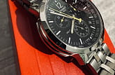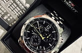 Эффектное чёрно-серебристое исполнение модели делает её идеальным вариантом для дополнения любого образа. Спортивный хронографХронографФункция позволяет измерять отрезки времени с особой точностью: часы, минуты, секунды. Верным признаком хронографа является наличие на циферблате 3 дополнительных окошек-счётчиков. обладает водонепроницаемостью при давлении 20 бар на глубине 200 метров, часы подходят для плавания и дайвинга. Кварцевый калибр ETA G10.211. Хирургическая сталь 316 L. Завинчивающаяся заводная головка и задняя крышка. Секундомер, тахиметрТахиметрРазмеченная шкала, располагается на ободке или безеле часов. Тахиметр позволяет рассчитать скорость на определённом участке пути, расстояние измеряется в километрах или милях., апертура даты. Габариты: 43 x 42 x 12 мм.