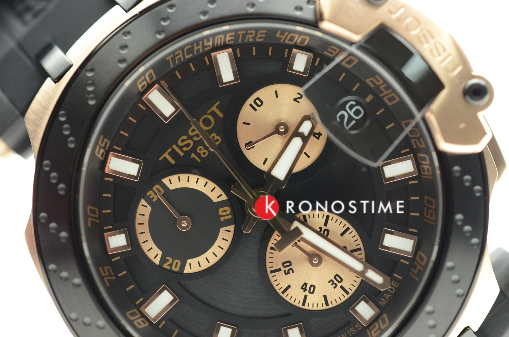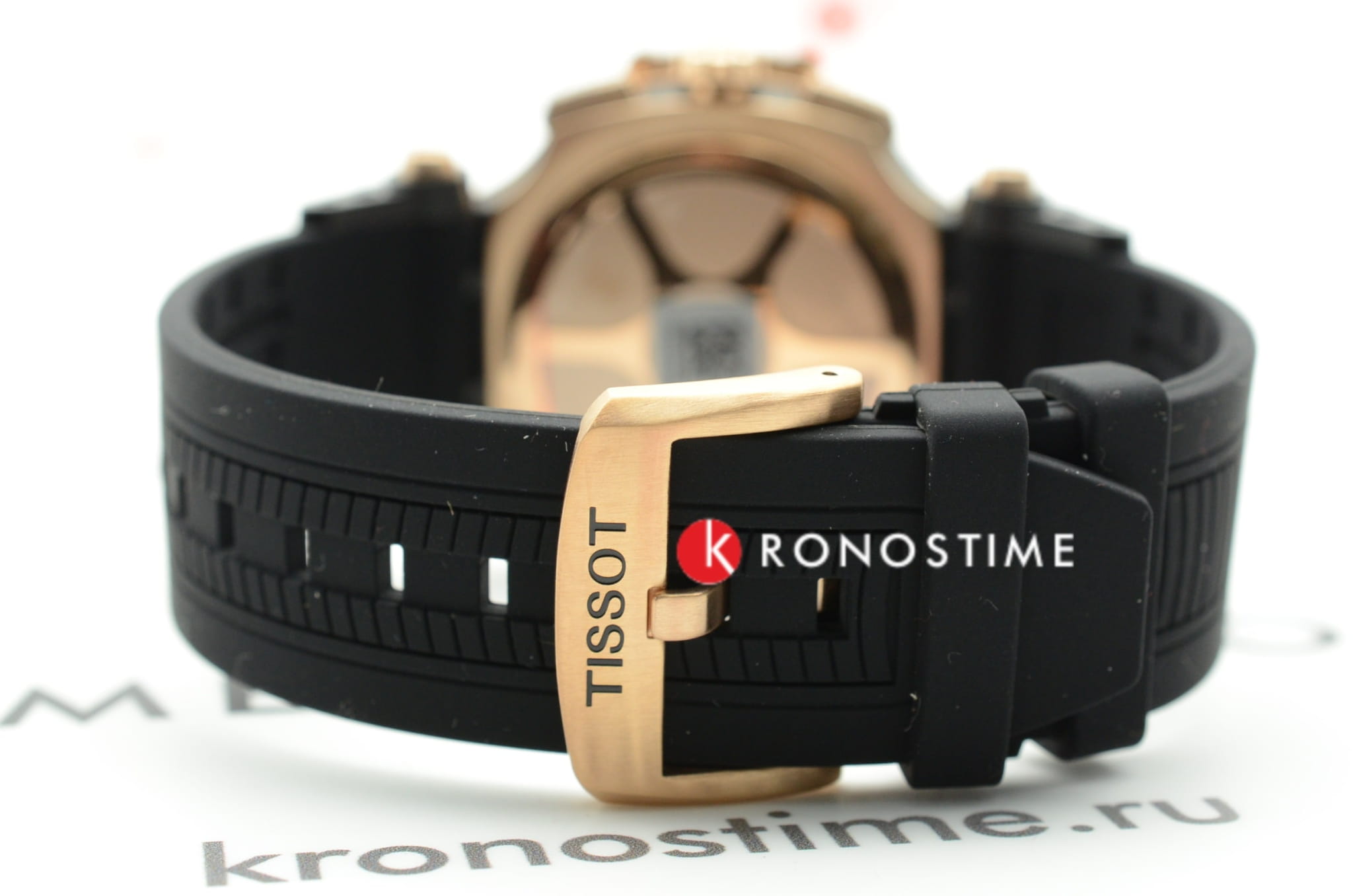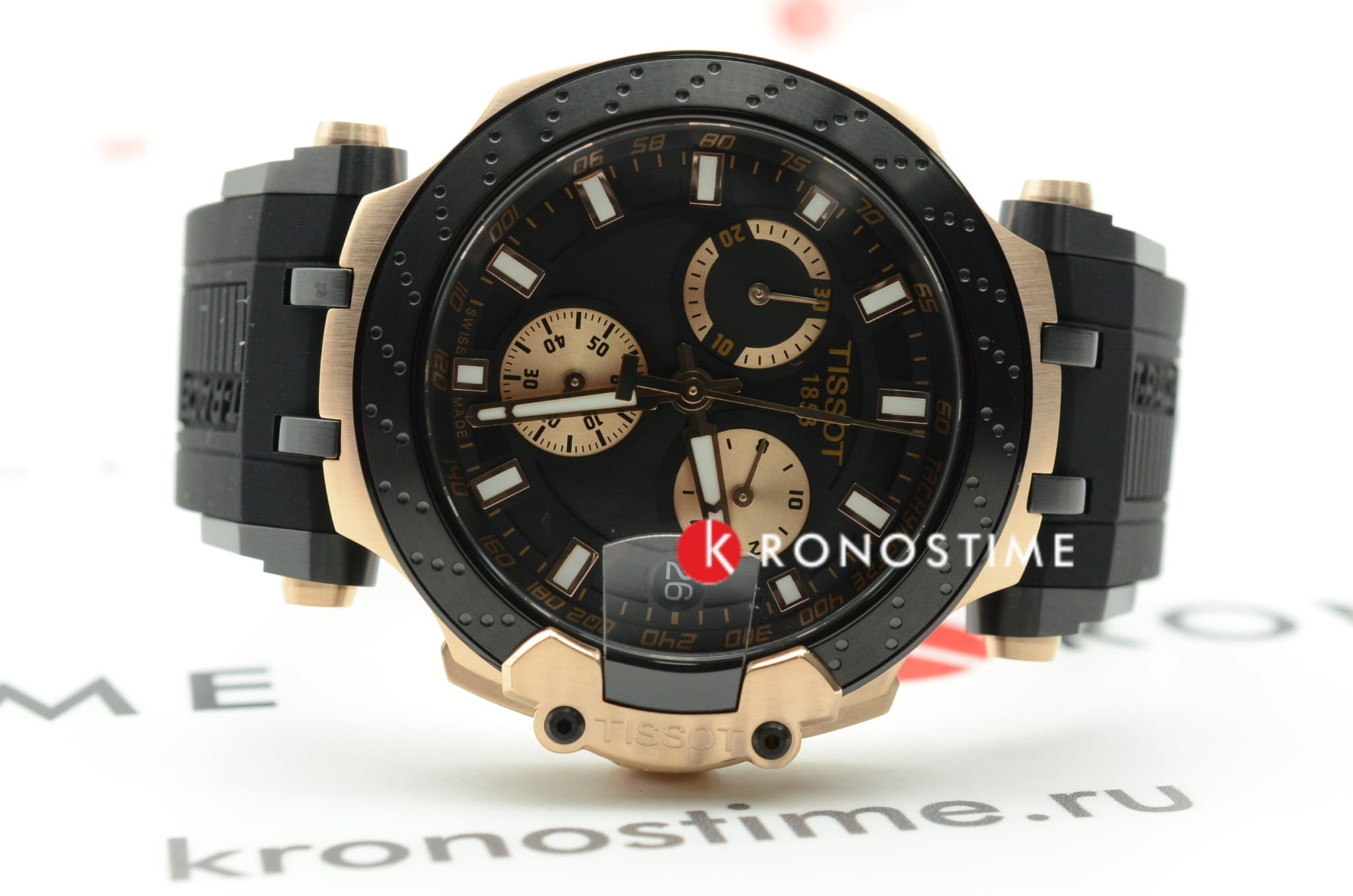 Внешний облик модели был вдохновлён лучшими гоночными мотоциклами. Массивный корпус имеет крупные детали, на чёрном циферблате чётко выделяются золотистые счётчики хронографаХронографФункция позволяет измерять отрезки времени с особой точностью: часы, минуты, секунды. Верным признаком хронографа является наличие на циферблате 3 дополнительных окошек-счётчиков., стрелки и метки с люминесцентным покрытиемЛюминесцентное покрытиеПозволяет считывать показания времени в темноте. Производители наносят на стрелки, часовые индексы, безель или поверхность циферблата светонакопительный состав, дающий холодное свечение.. Динамичный аксессуар позволит заявить о себе в любой ситуации, эксклюзивности добавляет прозрачная задняя крышка в виде колеса. Кварцевый механизм ETA G10.212. Корпус с золотистым PVD-покрытиемPVDУльтратонкое покрытие наносится в технике вакуумного напыления, сочетает в себе нитрид титана особой прочности со слоем золота или оксида хрома. Несёт в себе декоративную или защитную функцию.. Гибкий силиконовый ремешок. Секундомер, отображение текущего числа. Габариты: 47,6 x 43 x 12,3 мм.