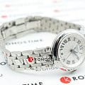 Дизайнеры реализуют свои идеи в оригинальном оформлении браслетов, центральные звенья цвета "розовое золото" приковывают взгляды. Интерес представляет также перламутровый циферблат компактного размера, благодаря этому часы красиво смотрятся на изящном женском запястье. Кварцевый механизм ETA F03.111. PVD-покрытие корпуса и браслета. Водонепроницаемость 100 метров. Габариты: 26 x 26 x 6,9 мм.