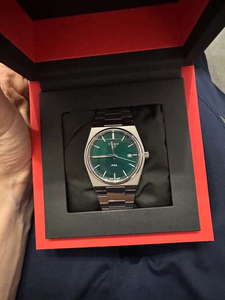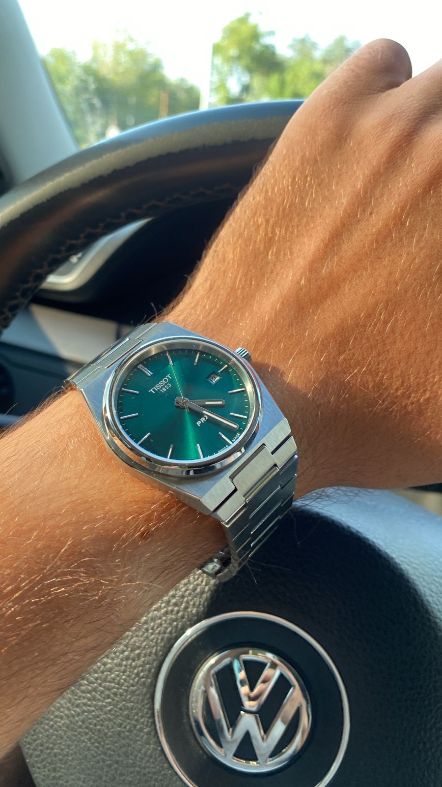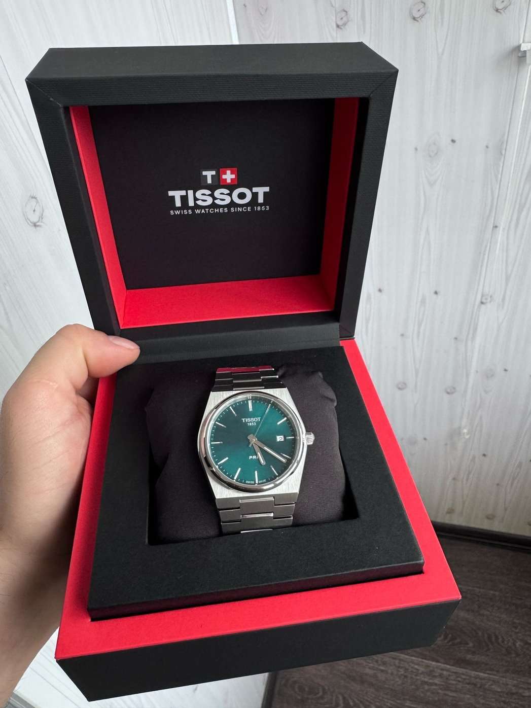 Tissot PRX 40mm (модель T137.410.11.091.00) – элегантные мужские часы, сочетающие современный стиль с передовыми технологиями. Корпус диаметром 40 мм выполнен из нержавеющей стали 316L, что обеспечивает надёжность и долговечность. Зелёный циферблат с эффектом солнечных лучей защищён сапфировым стекломСапфировое стеклоПрочный и надёжный материал из кристалла сапфира синтетического происхождения, характеризующийся особой твёрдостью и устойчивостью к царапинам и повреждениям., устойчивым к царапинам.