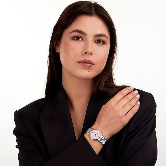Итальянские женские часы Trussardi T-Bent R2453144510 - это стильный женский аксессуар, который сочетает элегантный дизайн и практичность. Корпус выполнен из нержавеющей стали, что обеспечивает долговечность и утончённый внешний вид. БезельБезельВнешний ободок, закрепляющий стекло. В спортивных часах так называется поворотное кольцо с делениями на циферблате, выполняет роль таймера – замеряет отрезки времени на шкале. Неподвижный безель – элемент декора. Однонаправленно вращающийся безель на дайверских часах позволяет фиксировать моменты погружения и выныривания на поверхность. с алмазной гранью. Надежное минеральное стеклоМинеральное стеклоМинеральное стекло представляет собой искусственно выращенный минерал кварца. Такое стекло отличается особой устойчивостью к повреждениям и царапинам. Уступает по некоторым качествам сапфировому стеклу. защищает циферблат с кристаллами от царапин и обеспечивает долговечность. Модель оснащена кварцевым механизмом, обеспечивающим высокую точность хода. Браслет из нержавеющей стали на раскладной застёжкеРаскладная застёжкаТакой тип застёжки используется только на браслетах из металла. Она никогда не раскрывается полностью, происходит разделение на 2 и более частей. Раскладывающая застёжка снизит вероятность потери часов к минимуму. обеспечивает комфортное ношение. Водозащита 50 метров позволит защитить корпус от случайных брызг или капель дождя. Эта модель – отличный выбор для тех, кто ищет сочетание стиля, качества и функциональности. Часы станут не только полезным аксессуаром, но и выразительным элементом вашего имиджа.