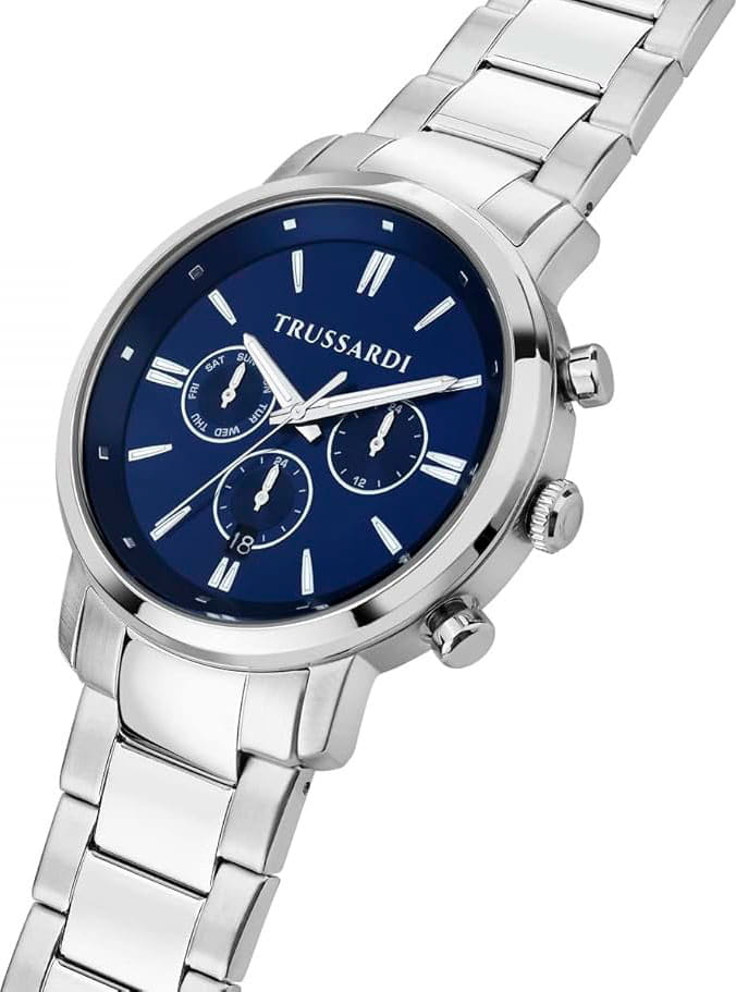 Итальянские мужские часы Trussardi T-Couple R2453147013 - это стильный мужской аксессуар, который сочетает элегантный дизайн и практичность. Корпус выполнен из нержавеющей стали, что обеспечивает долговечность и утончённый внешний вид. Надежное минеральное стеклоМинеральное стеклоМинеральное стекло представляет собой искусственно выращенный минерал кварца. Такое стекло отличается особой устойчивостью к повреждениям и царапинам. Уступает по некоторым качествам сапфировому стеклу. защищает циферблат от царапин и обеспечивает долговечность. Модель оснащена кварцевым механизмом, обеспечивающим высокую точность хода. Браслет из нержавеющей стали с раскладной застёжкойРаскладная застёжкаТакой тип застёжки используется только на браслетах из металла. Она никогда не раскрывается полностью, происходит разделение на 2 и более частей. Раскладывающая застёжка снизит вероятность потери часов к минимуму. обеспечивает комфортное ношение. Водозащита 50 метров позволит защитить корпус от случайных брызг или капель дождя. Вынесенный циферблат с 24-х часовым указателем времени, второй часовой пояс в 24-х часовом формате, а также вынесенный циферблат с указателем дня недели. Окошко даты в положении 6 часов. Стрелки и метки оснащены люминесцентным покрытиемЛюминесцентное покрытиеПозволяет считывать показания времени в темноте. Производители наносят на стрелки, часовые индексы, безель или поверхность циферблата светонакопительный состав, дающий холодное свечение., обеспечивающим отличную видимость даже при слабом освещении. Эта модель – отличный выбор для тех, кто ищет сочетание стиля, качества и функциональности. Часы станут не только полезным аксессуаром, но и выразительным элементом вашего имиджа.