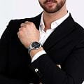 Итальянские мужские часы Trussardi Metropolitan R2453159002 - это стильный мужской аксессуар, который сочетает элегантный дизайн и практичность. Корпус выполнен из нержавеющей стали, что обеспечивает долговечность и утончённый внешний вид. БезельБезельВнешний ободок, закрепляющий стекло. В спортивных часах так называется поворотное кольцо с делениями на циферблате, выполняет роль таймера – замеряет отрезки времени на шкале. Неподвижный безель – элемент декора. Однонаправленно вращающийся безель на дайверских часах позволяет фиксировать моменты погружения и выныривания на поверхность. с IP-покрытиемIP-покрытиеМетод ионного напыления. Демонстрирует повышенную устойчивость к истиранию, окислению и химическим веществам. Под воздействием высокого давления и температуры около 1500°C молекулы металла надёжно соединяются с частицами корпуса часов. чёрного цвета.  Надежное минеральное стеклоМинеральное стеклоМинеральное стекло представляет собой искусственно выращенный минерал кварца. Такое стекло отличается особой устойчивостью к повреждениям и царапинам. Уступает по некоторым качествам сапфировому стеклу. защищает циферблат от царапин и обеспечивает долговечность. Модель оснащена кварцевым механизмом, обеспечивающим высокую точность хода. Браслет из нержавеющей стали с раскладной застёжкойРаскладная застёжкаТакой тип застёжки используется только на браслетах из металла. Она никогда не раскрывается полностью, происходит разделение на 2 и более частей. Раскладывающая застёжка снизит вероятность потери часов к минимуму. обеспечивает комфортное ношение. Водозащита 50 метров позволит защитить корпус от случайных брызг или капель дождя. Вынесенный циферблат с 24-х и 12-ти часовым указателем времени, а также вынесенный циферблат c хронографомХронографФункция позволяет измерять отрезки времени с особой точностью: часы, минуты, секунды. Верным признаком хронографа является наличие на циферблате 3 дополнительных окошек-счётчиков.. Окошко даты находится в положении 6 часов. Стрелки оснащены люминесцентным покрытиемЛюминесцентное покрытиеПозволяет считывать показания времени в темноте. Производители наносят на стрелки, часовые индексы, безель или поверхность циферблата светонакопительный состав, дающий холодное свечение., обеспечивающим отличную видимость даже при слабом освещении. Эта модель – отличный выбор для тех, кто ищет сочетание стиля, качества и функциональности. Часы станут не только полезным аксессуаром, но и выразительным элементом вашего имиджа.