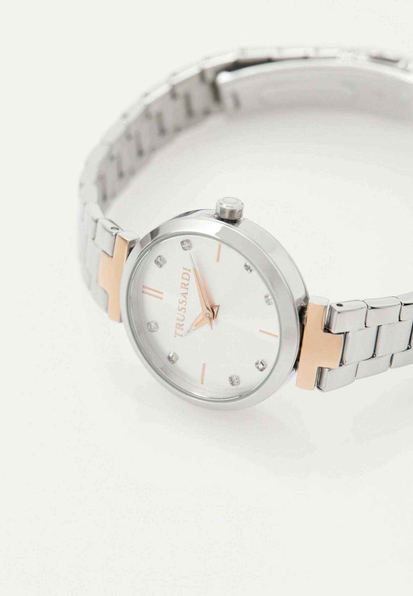 Итальянские женские часы Trussardi Loud R2453164508 - это стильный женский аксессуар, который сочетает элегантный дизайн и практичность. Корпус выполнен из нержавеющей стали, что обеспечивает долговечность и утончённый внешний вид. Надежное минеральное стеклоМинеральное стеклоМинеральное стекло представляет собой искусственно выращенный минерал кварца. Такое стекло отличается особой устойчивостью к повреждениям и царапинам. Уступает по некоторым качествам сапфировому стеклу. защищает циферблат с кристаллами от царапин и обеспечивает долговечность. Модель оснащена кварцевым механизмом, обеспечивающим высокую точность хода. Браслет из нержавеющей стали с частичным IP-покрытиемIP-покрытиеМетод ионного напыления. Демонстрирует повышенную устойчивость к истиранию, окислению и химическим веществам. Под воздействием высокого давления и температуры около 1500°C молекулы металла надёжно соединяются с частицами корпуса часов. на раскладной застёжкеРаскладная застёжкаТакой тип застёжки используется только на браслетах из металла. Она никогда не раскрывается полностью, происходит разделение на 2 и более частей. Раскладывающая застёжка снизит вероятность потери часов к минимуму. обеспечивает комфортное ношение. Стрелки оснащены люминесцентным покрытиемЛюминесцентное покрытиеПозволяет считывать показания времени в темноте. Производители наносят на стрелки, часовые индексы, безель или поверхность циферблата светонакопительный состав, дающий холодное свечение., обеспечивающим отличную видимость даже при слабом освещении. Водозащита 50 метров позволит защитить корпус от случайных брызг или капель дождя. Эта модель – отличный выбор для тех, кто ищет сочетание стиля, качества и функциональности. Часы станут не только полезным аксессуаром, но и выразительным элементом вашего имиджа. В комплекте браслет.