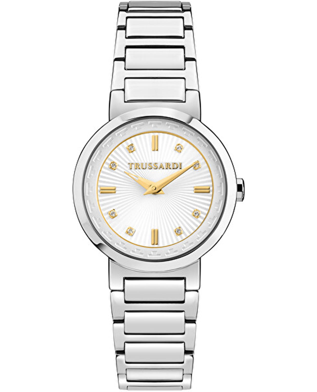 Итальянские женские часы Trussardi T-Bridge R2453171506 - это стильный женский аксессуар, который сочетает элегантный дизайн и практичность. Корпус выполнен из нержавеющей стали, что обеспечивает долговечность и утончённый внешний вид. Надежное минеральное стеклоМинеральное стеклоМинеральное стекло представляет собой искусственно выращенный минерал кварца. Такое стекло отличается особой устойчивостью к повреждениям и царапинам. Уступает по некоторым качествам сапфировому стеклу. защищает циферблат с кристаллами от царапин и обеспечивает долговечность. Модель оснащена кварцевым механизмом, обеспечивающим высокую точность хода.  Браслет из нержавеющей стали на раскладной застёжкеРаскладная застёжкаТакой тип застёжки используется только на браслетах из металла. Она никогда не раскрывается полностью, происходит разделение на 2 и более частей. Раскладывающая застёжка снизит вероятность потери часов к минимуму. обеспечивает комфортное ношение. Водозащита 50 метров позволит защитить корпус от случайных брызг или капель дождя. Эта модель – отличный выбор для тех, кто ищет сочетание стиля, качества и функциональности. Часы станут не только полезным аксессуаром, но и выразительным элементом вашего имиджа.