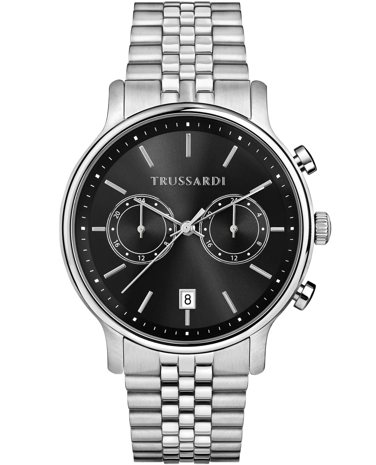Итальянские мужские часы Trussardi T-Inedito R2453174002 - это стильный мужской аксессуар, который сочетает элегантный дизайн и практичность. Корпус выполнен из нержавеющей стали , что обеспечивает долговечность и утончённый внешний вид. Надежное минеральное стеклоМинеральное стеклоМинеральное стекло представляет собой искусственно выращенный минерал кварца. Такое стекло отличается особой устойчивостью к повреждениям и царапинам. Уступает по некоторым качествам сапфировому стеклу. защищает циферблат от царапин и обеспечивает долговечность. Модель оснащена кварцевым механизмом, обеспечивающим высокую точность хода. Стальной браслет на раскладной застёжкеРаскладная застёжкаТакой тип застёжки используется только на браслетах из металла. Она никогда не раскрывается полностью, происходит разделение на 2 и более частей. Раскладывающая застёжка снизит вероятность потери часов к минимуму., гарантирует комфортное и безопасное ношение. Водозащита 50 метров позволит защитить корпус от случайных брызг или капель дождя. Вынесенный циферблат с 24-х часовым указателем времени, второй часовой пояс в 24-х часовом формате. Окошко даты находится в положении 6 часов. Эта модель – отличный выбор для тех, кто ищет сочетание стиля, качества и функциональности. Часы станут не только полезным аксессуаром, но и выразительным элементом вашего имиджа.