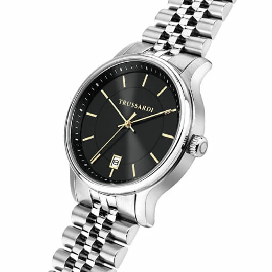 Итальянские мужские часы Trussardi T-Inedito R2453174004 - это стильный мужской аксессуар, который сочетает элегантный дизайн и практичность. Корпус выполнен из нержавеющей стали , что обеспечивает долговечность и утончённый внешний вид. Надежное минеральное стеклоМинеральное стеклоМинеральное стекло представляет собой искусственно выращенный минерал кварца. Такое стекло отличается особой устойчивостью к повреждениям и царапинам. Уступает по некоторым качествам сапфировому стеклу. защищает циферблат от царапин и обеспечивает долговечность. Модель оснащена кварцевым механизмом, обеспечивающим высокую точность хода. Стальной браслет на раскладной застёжкеРаскладная застёжкаТакой тип застёжки используется только на браслетах из металла. Она никогда не раскрывается полностью, происходит разделение на 2 и более частей. Раскладывающая застёжка снизит вероятность потери часов к минимуму., гарантирует комфортное и безопасное ношение. Водозащита 50 метров позволит защитить корпус от случайных брызг или капель дождя. Окошко даты находится в положении 6 часов. Эта модель – отличный выбор для тех, кто ищет сочетание стиля, качества и функциональности. Часы станут не только полезным аксессуаром, но и выразительным элементом вашего имиджа.