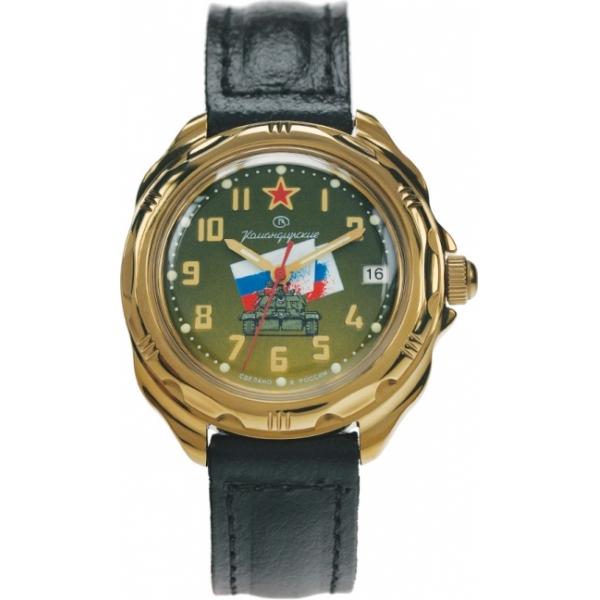 Российские механические часы. Корпус из высокопрочной стали с антикоррозийными свойствами. Ремешок из натуральной кожи черного цвета. Черный фон циферблата с арабскими цифрами, изображением Российского флага и танка. Водонепроницаемость часов составляет 3 ATM. Минеральное стекло, устойчивое к появлению царапин.