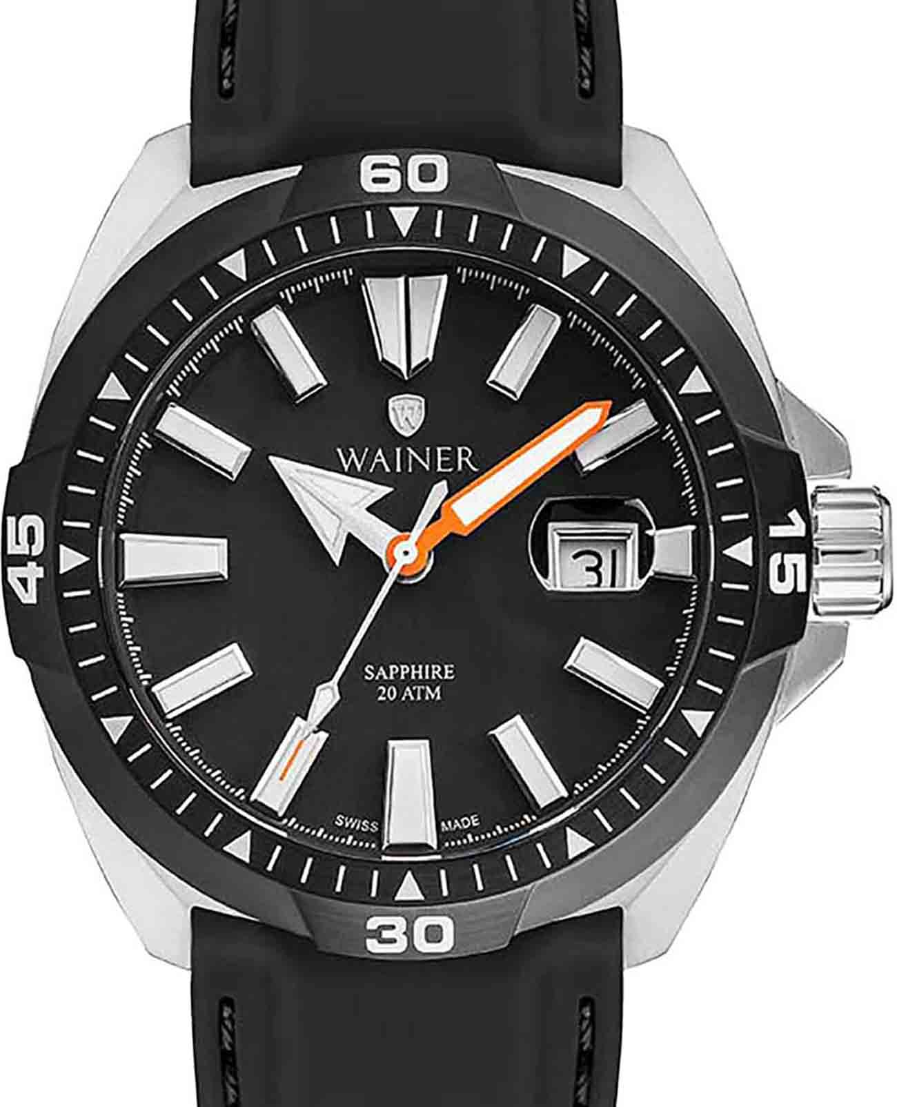 Швейцарские мужские кварцевые часы Wainer WA.10922-A с механизмом калибра Ronda 515 станут превосходным выбором для мужчин, ценящих надежность и стиль. Круглый корпус из нержавеющей стали 316L с частичным PVD-покрытиемPVDУльтратонкое покрытие наносится в технике вакуумного напыления, сочетает в себе нитрид титана особой прочности со слоем золота или оксида хрома. Несёт в себе декоративную или защитную функцию. диаметром 44 мм защищен прочным сапфировым стекломСапфировое стеклоПрочный и надёжный материал из кристалла сапфира синтетического происхождения, характеризующийся особой твёрдостью и устойчивостью к царапинам и повреждениям.. Циферблат украшен фирменным логотипом Wainer и метками в виде штрихов, а окошко даты с увеличительным стеклом расположено в положении 3 часа. Рифленая заводная головка с защитой обеспечивает дополнительную надежность механизма. Часы имеют класс водозащиты 200 метров, позволит плавать, нырять и заниматься другими водными видами спорта. Модель комплектуется силиконовым ремешком на стандартной застежке. Прочный корпус и высококачественный механизм гарантируют долговечность использования, делая эти часы идеальным аксессуаром для активного образа жизни.