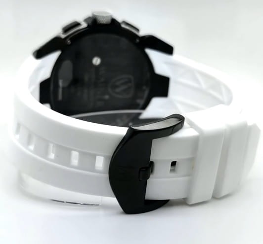 Швейцарские мужские кварцевые часы-хронограф Wainer Trio WA.16910-L с механизмом калибра Ronda 5030 созданы для любителей современного спортивного стиля. Часы оснащены широким набором функций, включая секундомер, тахиметр и вынесенную секундную стрелку. Круглый корпус из нержавеющей стали 316L с частичным PVD-покрытиемPVDУльтратонкое покрытие наносится в технике вакуумного напыления, сочетает в себе нитрид титана особой прочности со слоем золота или оксида хрома. Несёт в себе декоративную или защитную функцию. диаметром 47 мм и толщиной 13 мм защищен прочным сапфировым стекломСапфировое стеклоПрочный и надёжный материал из кристалла сапфира синтетического происхождения, характеризующийся особой твёрдостью и устойчивостью к царапинам и повреждениям.. Черный циферблат с метками в виде штрихов оснащен окошком даты в положении 6 часов. Стрелки с люминесцентным покрытиемЛюминесцентное покрытиеПозволяет считывать показания времени в темноте. Производители наносят на стрелки, часовые индексы, безель или поверхность циферблата светонакопительный состав, дающий холодное свечение. обеспечивают хорошую видимость в темное время суток. Рифленая заводная головка с защитой добавляет надежности модели. Часы имеют класс водозащиты 100 метров, позволит плавать, нырять и заниматься другими водными видами спорта. Модель комплектуется удобным силиконовым ремешком шириной 24 мм на стандартной застежке. Вес часов составляет 140 грамм, что обеспечивает комфортное ношение в течение дня.