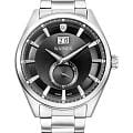 Мужские кварцевые часы Wainer WA.17000-A — это элегантный аксессуар, воплощающий швейцарское качество и безупречный дизайн. Модель выполнена в круглой форме из нержавеющей стали 316L, что делает её прочной и устойчивой к коррозии. Циферблат чёрного цвета выполнен по технологии , создающей эффект солнечных лучей, а его поверхность защищена минеральным стекломСапфировое стеклоПрочный и надёжный материал из кристалла сапфира синтетического происхождения, характеризующийся особой твёрдостью и устойчивостью к царапинам и повреждениям. с Антибликовое покрытиеАнтибликовое покрытиеСлой оксида металла в 0,13-0,3 микрон, благодаря которому стекло часов не бликует и не отражает свет. Антибликовое покрытие уменьшает отражение света в 10 раз, обеспечивая отличную читаемость показателей циферблата., устойчивым к царапинам и обеспечивающим чёткую видимость при любом освещении. Циферблат украшен штриховыми метками и имеет вынесенную секундную стрелку на отдельном циферблате, а окошко даты расположено в положении 12 часов. Рифлёная заводная головка обеспечивает удобство в использовании, а стальной браслет из стали 316L дополнен Раскладная застёжкаРаскладная застёжкаТакой тип застёжки используется только на браслетах из металла. Она никогда не раскрывается полностью, происходит разделение на 2 и более частей. Раскладывающая застёжка снизит вероятность потери часов к минимуму., что делает модель комфортной для повседневного ношения. Часы водонепроницаемы до 50 метров (, что позволяет использовать их при мытье рук или под лёгким дождём. Фирменный логотип Wainer добавляет модели узнаваемости и статуса. Эти часы станут универсальным аксессуаром для тех, кто ценит сочетание стиля, функциональности и швейцарского качества — идеальный выбор для повседневной носки и деловых встреч.