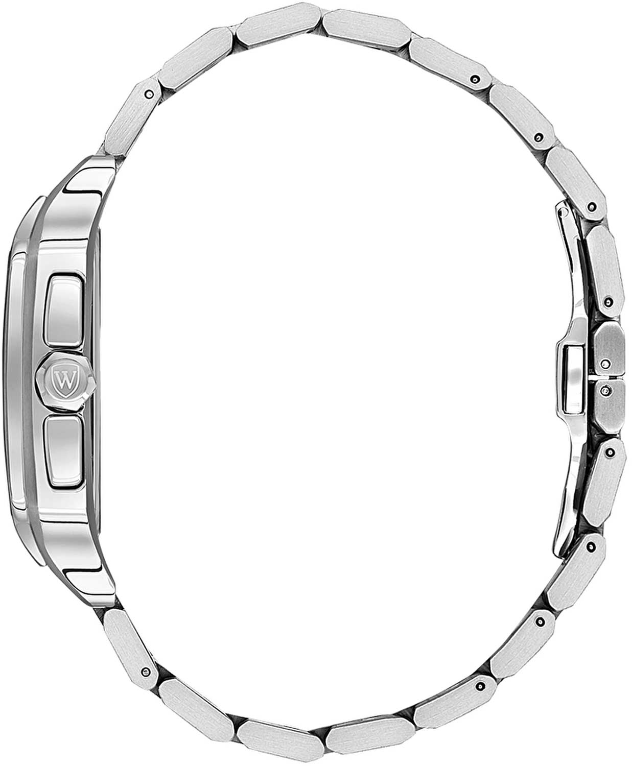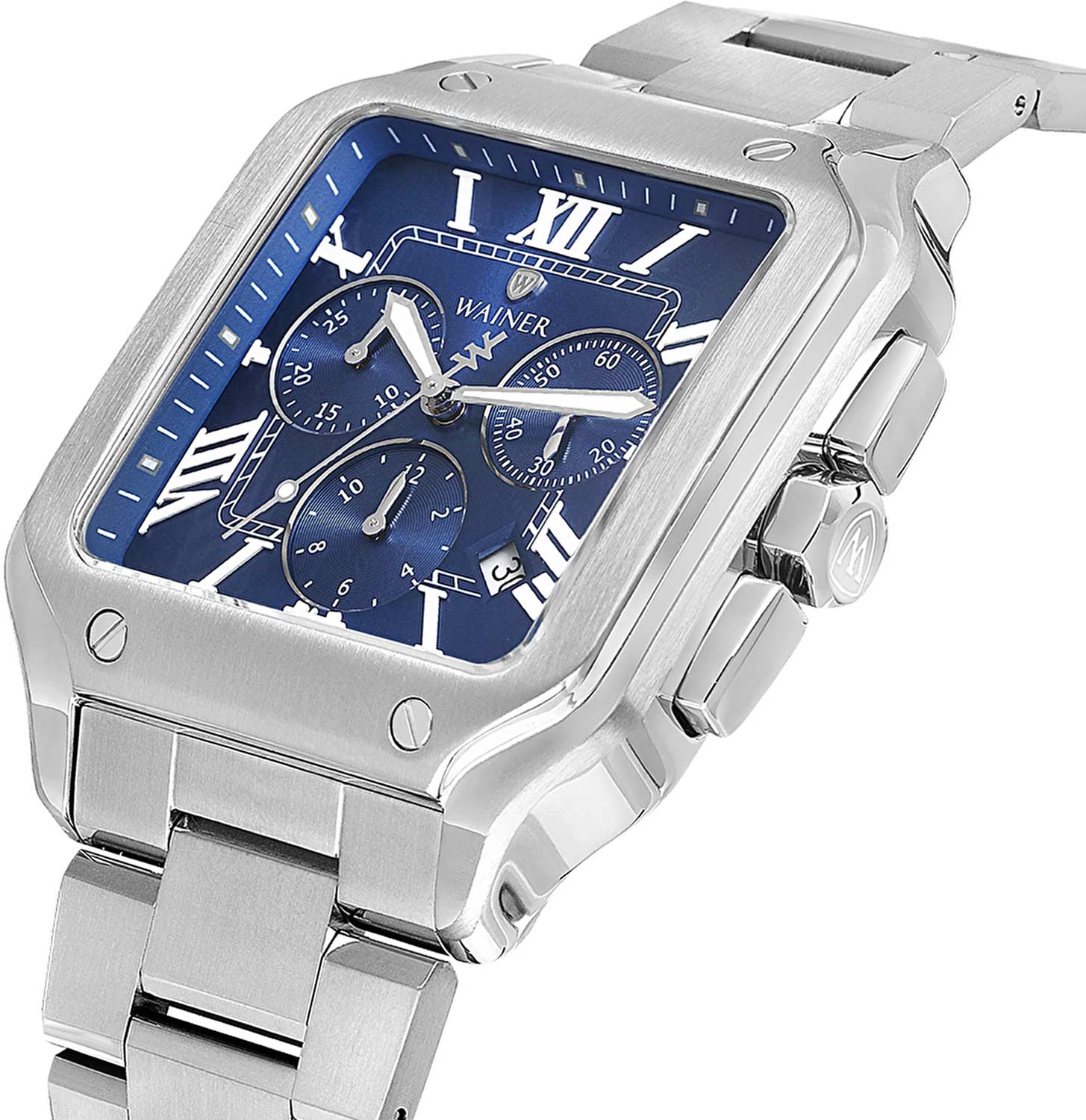 Мужские кварцевые часы Wainer WA.18090-C — это стильный аксессуар, сочетающий в себе швейцарское качество и изысканный дизайн. Модель выполнена в квадратной форме из стали 316L с декоративными винтами, что придаёт ей прочность и устойчивость к царапинам. Циферблат дополнен штриховыми метками и римскими цифрами, а секундная стрелка на конце декорирована буквой W, подчёркивая внимание к деталям. Защиту механизма обеспечивает сапфировое стеклоСапфировое стеклоПрочный и надёжный материал из кристалла сапфира синтетического происхождения, характеризующийся особой твёрдостью и устойчивостью к царапинам и повреждениям., устойчивое к повреждениям. Окошко даты расположено в положении 4 часов, а гранёная заводная головка с защитой оснащена фирменным логотипом, добавляя модели индивидуальности. Браслет из стали 316L шириной 22 мм оснащён Раскладная застёжкаРаскладная застёжкаТакой тип застёжки используется только на браслетах из металла. Она никогда не раскрывается полностью, происходит разделение на 2 и более частей. Раскладывающая застёжка снизит вероятность потери часов к минимуму., обеспечивающей комфорт и надёжную фиксацию на запястье. Водонепроницаемость позволяет использовать модель при мытье рук или под лёгким дождём. Стрелки с люминесцентным покрытиемЛюминесцентное покрытиеПозволяет считывать показания времени в темноте. Производители наносят на стрелки, часовые индексы, безель или поверхность циферблата светонакопительный состав, дающий холодное свечение. обеспечивают отличную читаемость даже в условиях слабого освещения. Механизм калибра Ronda 5030.D гарантирует точность хода и надёжность. Эти часы станут универсальным аксессуаром для тех, кто ценит сочетание стиля, функциональности и швейцарского мастерства — идеальный выбор для повседневной носки и торжественных случаев.