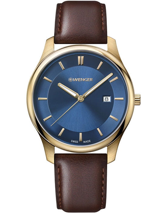 Мужские швейцарские часы с календарём Wenger 01.1441.119, кварцевый механизм с высокой точностью. Класс водозащиты: 30 метров, позволит защитить корпус от случайных брызг или капель дождя. Корпус часов изготовлен из стали, золотистого цвета.