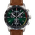 Мужские наручные часы-хронографХронографФункция позволяет измерять отрезки времени с особой точностью: часы, минуты, секунды. Верным признаком хронографа является наличие на циферблате 3 дополнительных окошек-счётчиков. Zeppelin Night Cruise 72884 сочетают в себе спортивный дизайн и функциональность. Модель обладает круглым корпусом диаметром 42 мм, изготовленным из нержавеющей стали, что обеспечивает высокую устойчивость к внешним воздействиям. Браслет выполнен из коричневой кожи с классической застежкой, гарантирующей комфортное ношение и стильный внешний вид. Зеленый циферблат оснащен шкалой с тахиметромТахиметрРазмеченная шкала, располагается на ободке или безеле часов. Тахиметр позволяет рассчитать скорость на определённом участке пути, расстояние измеряется в километрах или милях. по краю и дополнен малым секундомером, а также окном даты на позиции «4 часов». Для защиты используется минеральное стеклоМинеральное стеклоМинеральное стекло представляет собой искусственно выращенный минерал кварца. Такое стекло отличается особой устойчивостью к повреждениям и царапинам. Уступает по некоторым качествам сапфировому стеклу. с антибликовым покрытиемАнтибликовое покрытиеСлой оксида металла в 0,13-0,3 микрон, благодаря которому стекло часов не бликует и не отражает свет. Антибликовое покрытие уменьшает отражение света в 10 раз, обеспечивая отличную читаемость показателей циферблата., обеспечивающее прочную защиту от царапин и оптимальную видимость циферблата даже при ярком свете. Часы работают на кварцевом механизме ETA G10.212, который гарантирует точное время без необходимости подзаводки. Водонепроницаемость часов достигает 10 атмосфер (100 метров), что позволяет использовать их во время плавания и других водных видов спорта, однако не рекомендуется для глубоководного дайвинга.